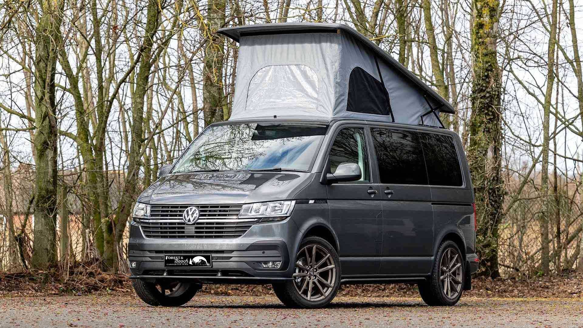 The VW T6.1 in grey with a pop-top roof delivers reliability and German engineering. Perfect for campers who want performance and premium comfort.
